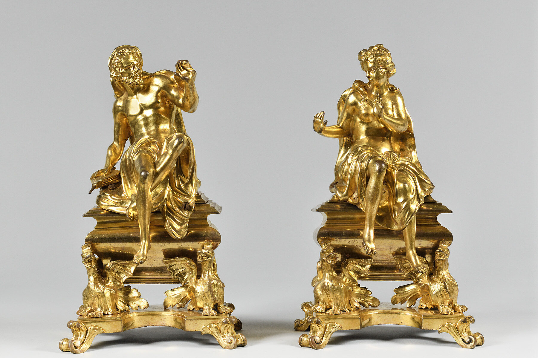 Paire de chenets d’époque Louis XIV représentant Venus et Vulcain