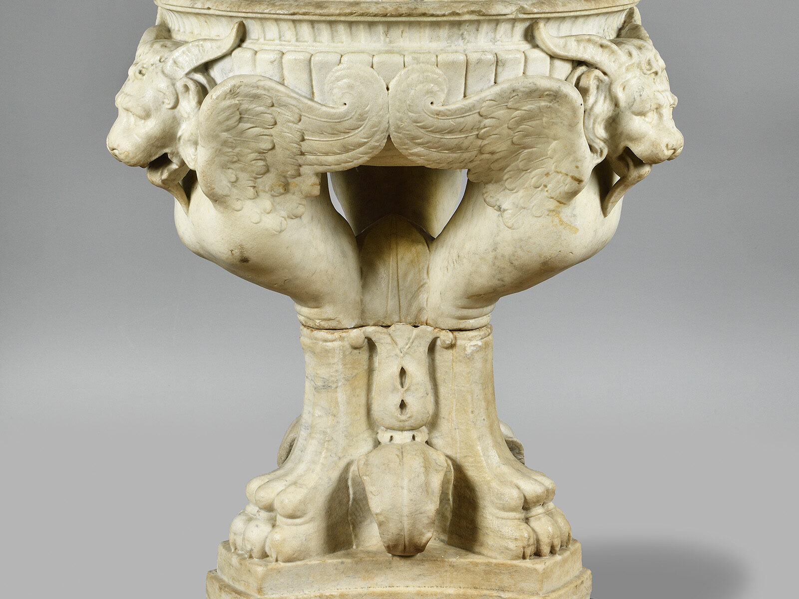D’aprés le modèle dit « Bassin Trentham » créé par Giovanni Battista Piranèse (1729-1778) à partir d’éléments antiques retrouvés à la Villa d’Hadrien de Tivoli ; ancienne collection du duc de Sutherland à Trentham Hall et aujourd’hui conservé au Bristish Museum à Londres (Inv. 1907,1214.4)