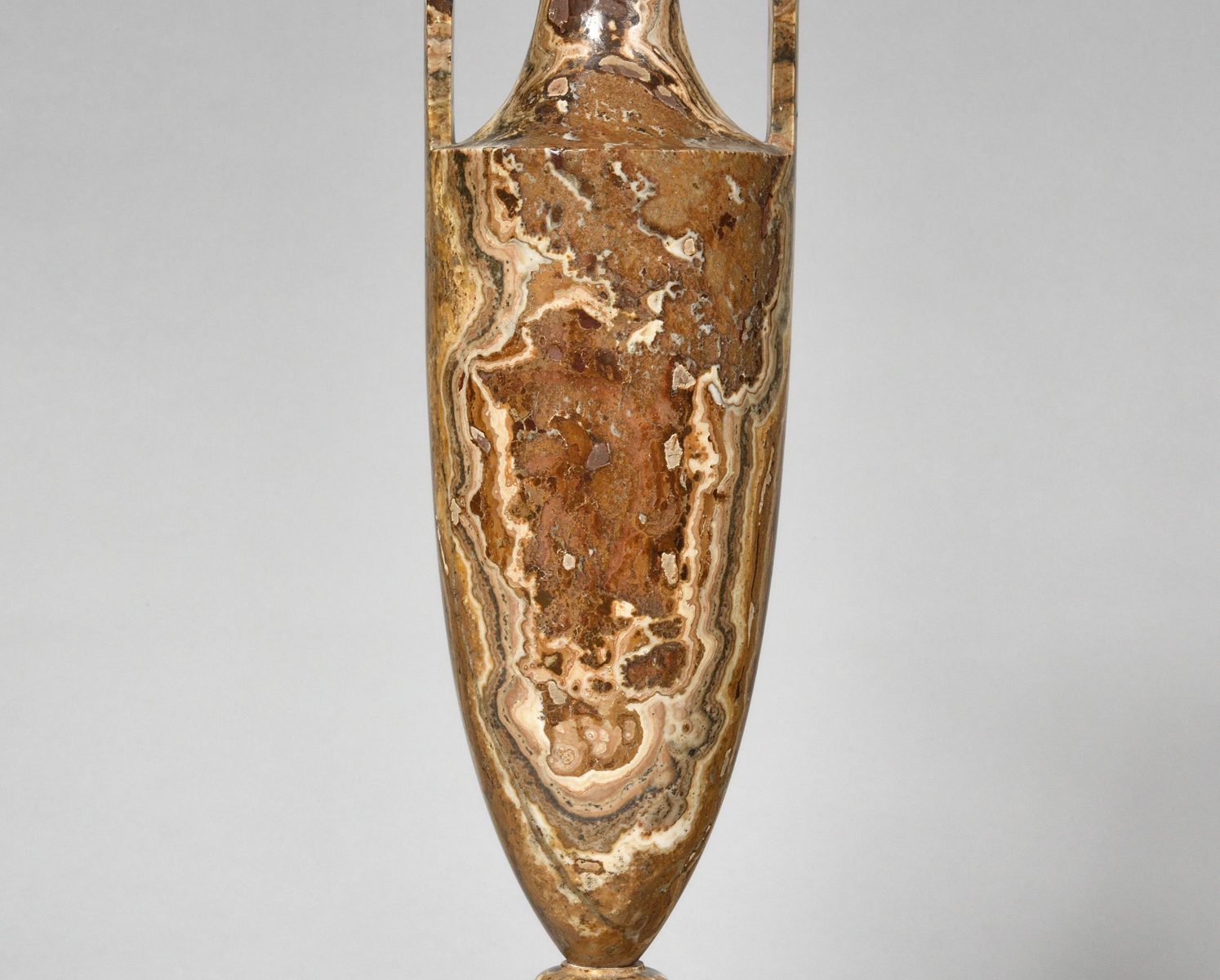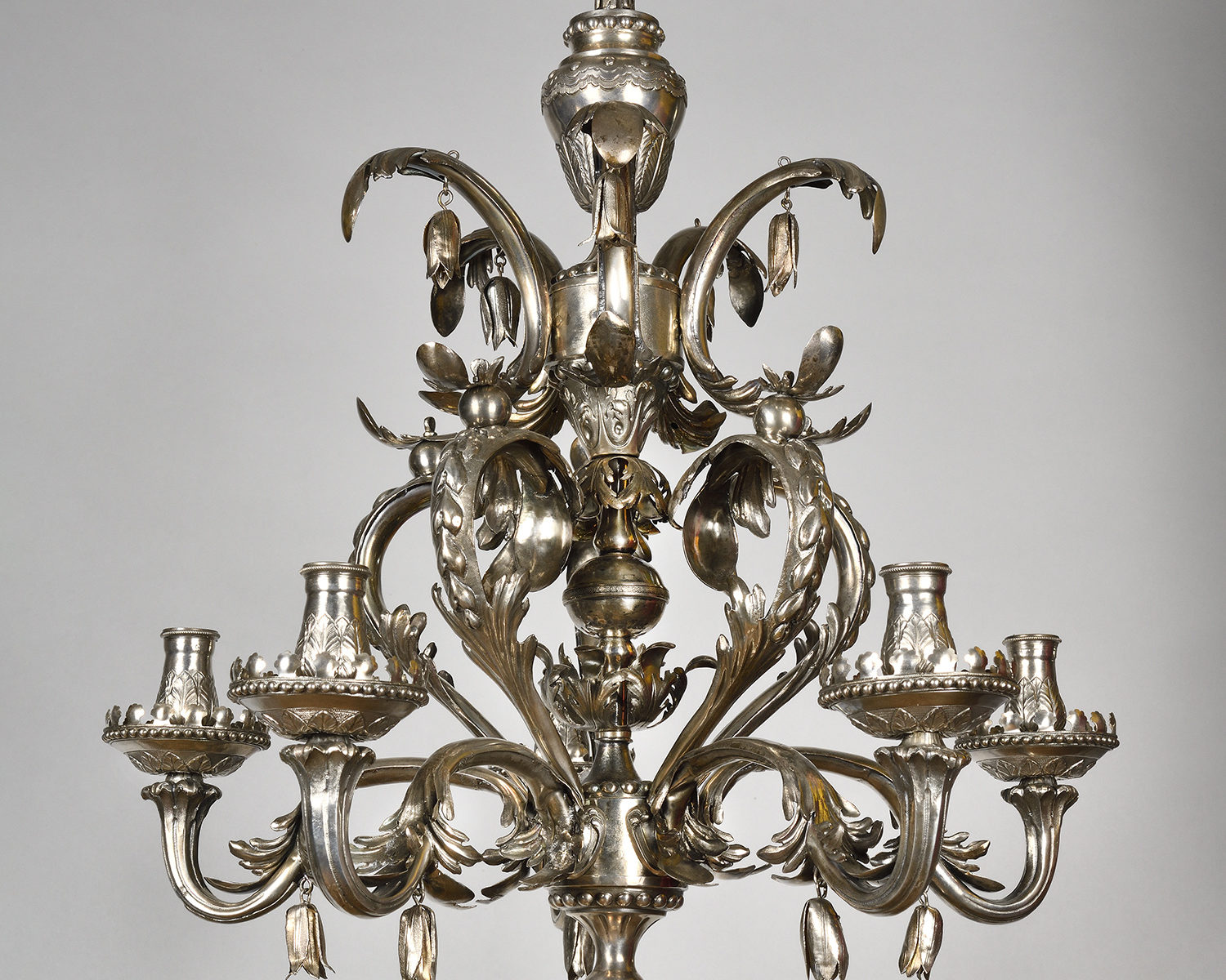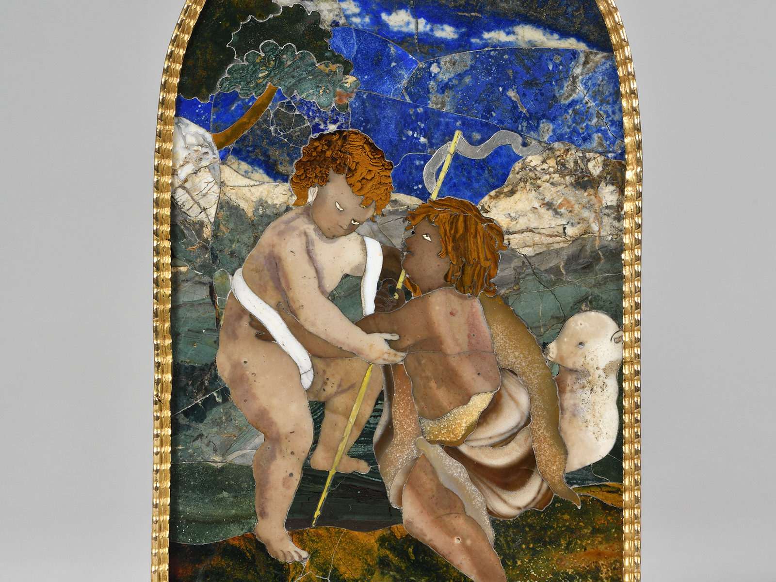 Riche marqueterie de fleurs sur fond d’ébène. Plateau orné d’un large vase fleuri sur un entablement inscrit entre de larges rinceaux feuillagés accueillant oiseaux et papillons, escargots stylisés, scènes de chasses et mascarons. Quatre tiroirs en façade à traverse répartis sur trois rangs ornés d’entrées de serrures et de poignées en bronze doré. Les montants avant à pans coupés et quatre pieds terminés par des pattes de lions en bronze doré. Lingotière d’époque postérieure.