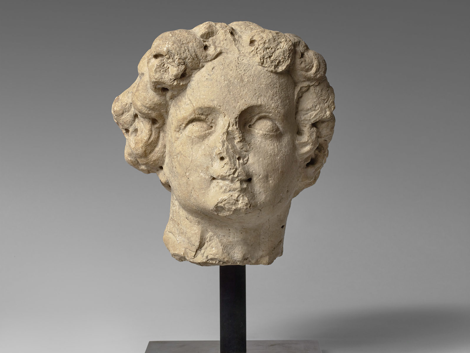 Tête en pierre sculptée figurant Apollon