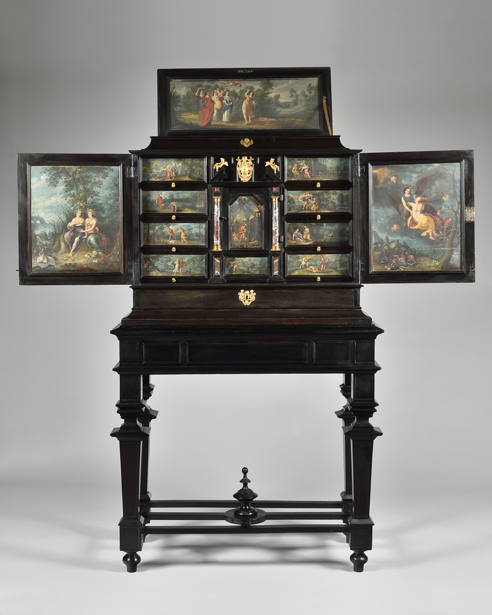 Rare Antwerp cabinet decorated with paintings attributed to Hendrick Van Balen (1575–1632) and Jan Brueghel the Elder, known as Brueghel of Velvet (1568–1625)