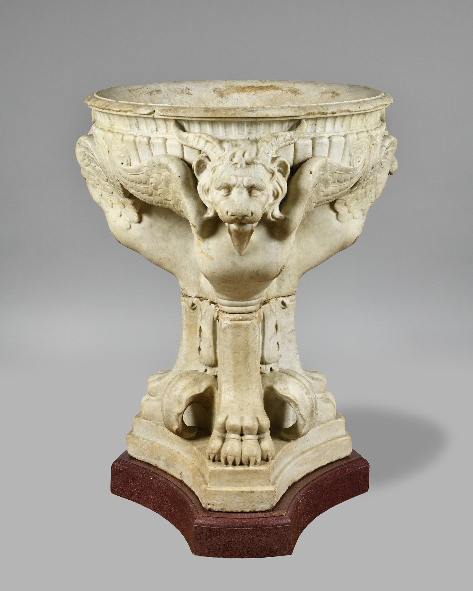 D’aprés le modèle dit « Bassin Trentham » créé par Giovanni Battista Piranèse (1729-1778) à partir d’éléments antiques retrouvés à la Villa d’Hadrien de Tivoli ; ancienne collection du duc de Sutherland à Trentham Hall et aujourd’hui conservé au Bristish Museum à Londres (Inv. 1907,1214.4)